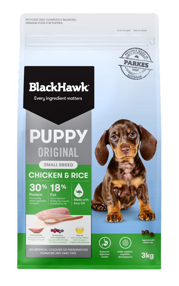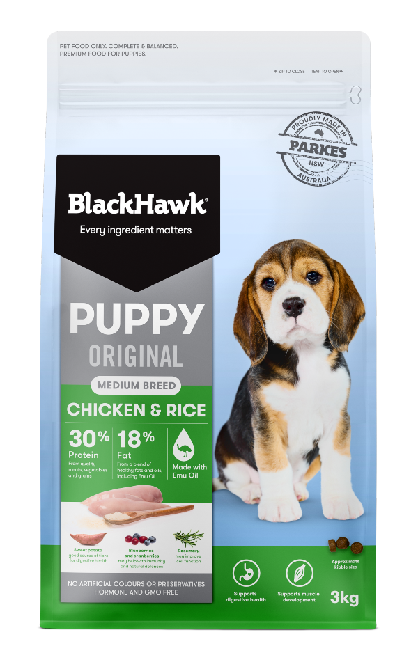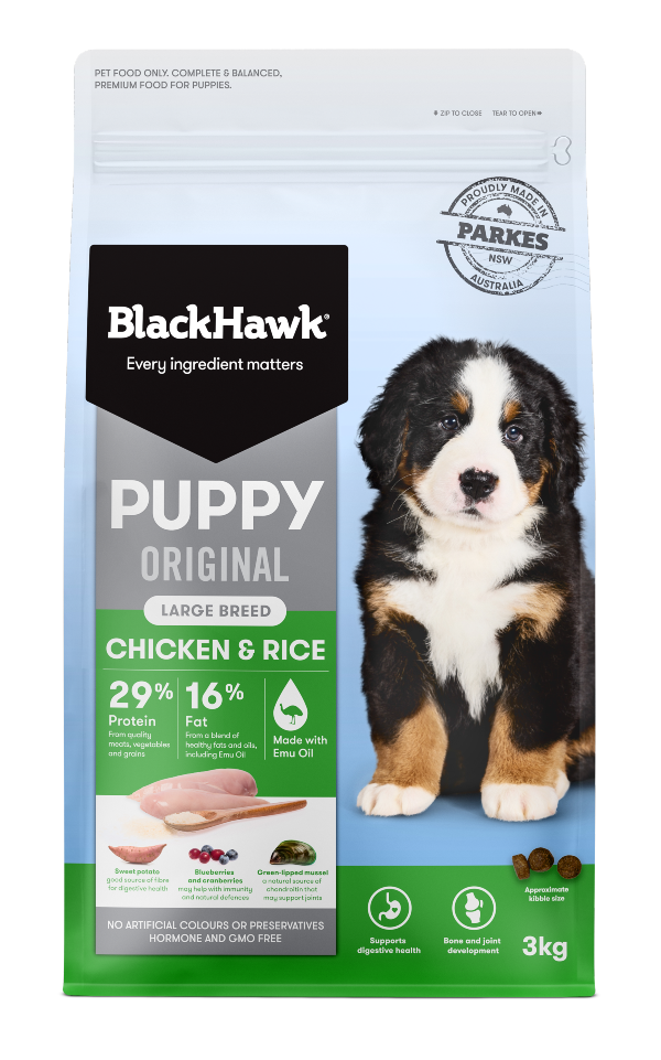 Made with Australian chicken, a highly digestible lean protein source packed with essential amino acids for strong muscles, healthy bones, and vitality. This balanced high-quality diet also includes sweet potato which is a rich source of fibre for intestinal health and omega-3 fatty acids from fish oil for brain development.