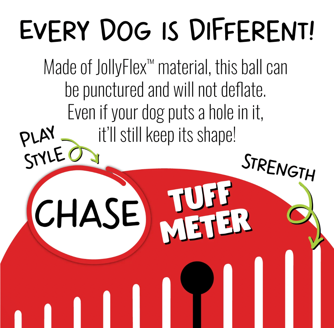 The Jolly Soccer Ball can take a beating and keep bouncing back for more. Made from our signature JollyFlex material, your pup can give it their all without popping their playmate. It's time to unleash their inner soccer star!