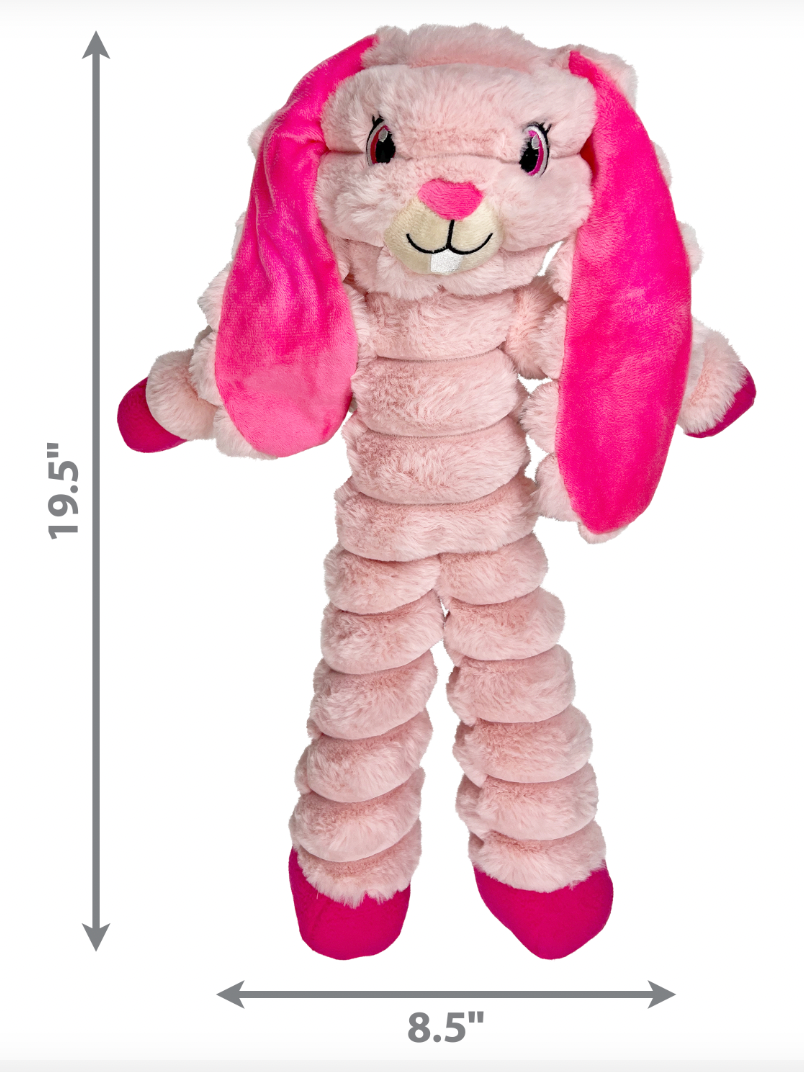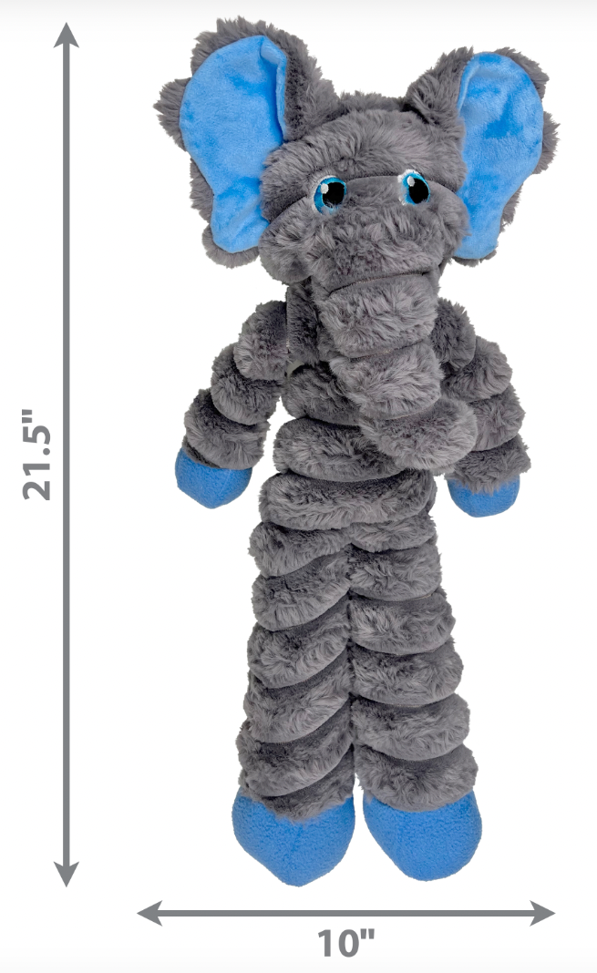 KONG Shakers Crumples’ jumbo size delivers extra-large fun with a long, floppy body great for satisfying shaking, tugging and fetching instincts. A unique grunting squeaker in the body, crackly arms and squeaky feet keep dogs playing. Irresistibly soft plush makes them great snuggle buddies. Thin arms and legs let dogs big and small grab on and enjoy.