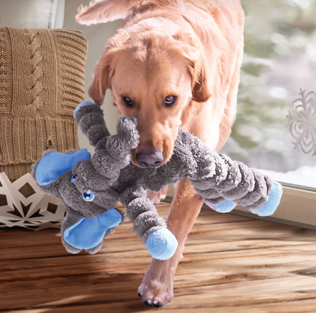 - Thin arms and legs allow dogs of all sizes to grab and shake