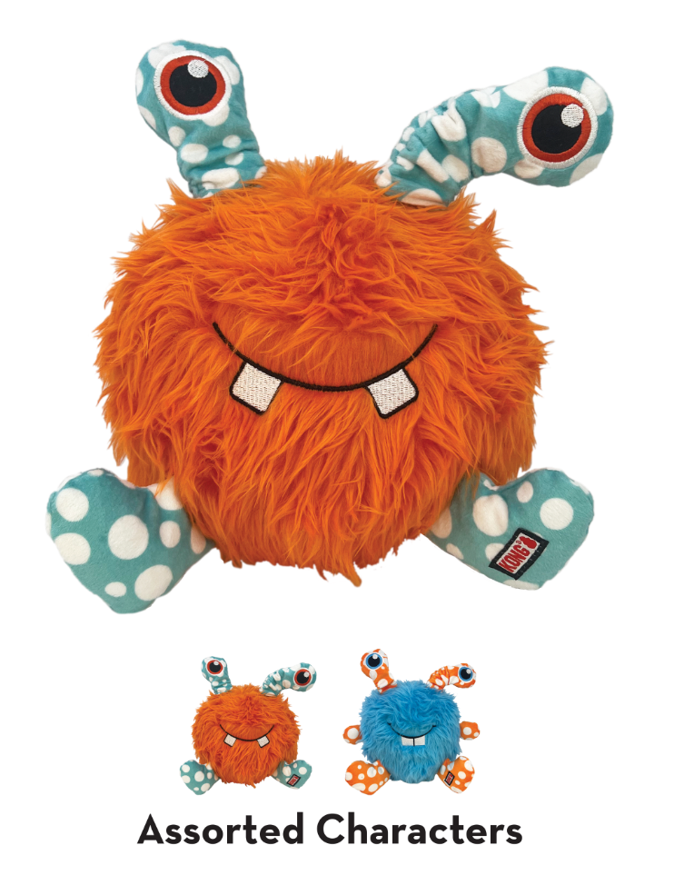KONG Whipple’s jumbo size launches big dogs—and little dogs with big attitudes—into super-sized fun with arms, legs and eyes that let dogs of all sizes grab on, whip and shake for instinct-satisfying fun. Unique, easy squeak action prolongs play while long, soft plush make these goofy pals ideal snuggle buddies between bouts of Whippling.