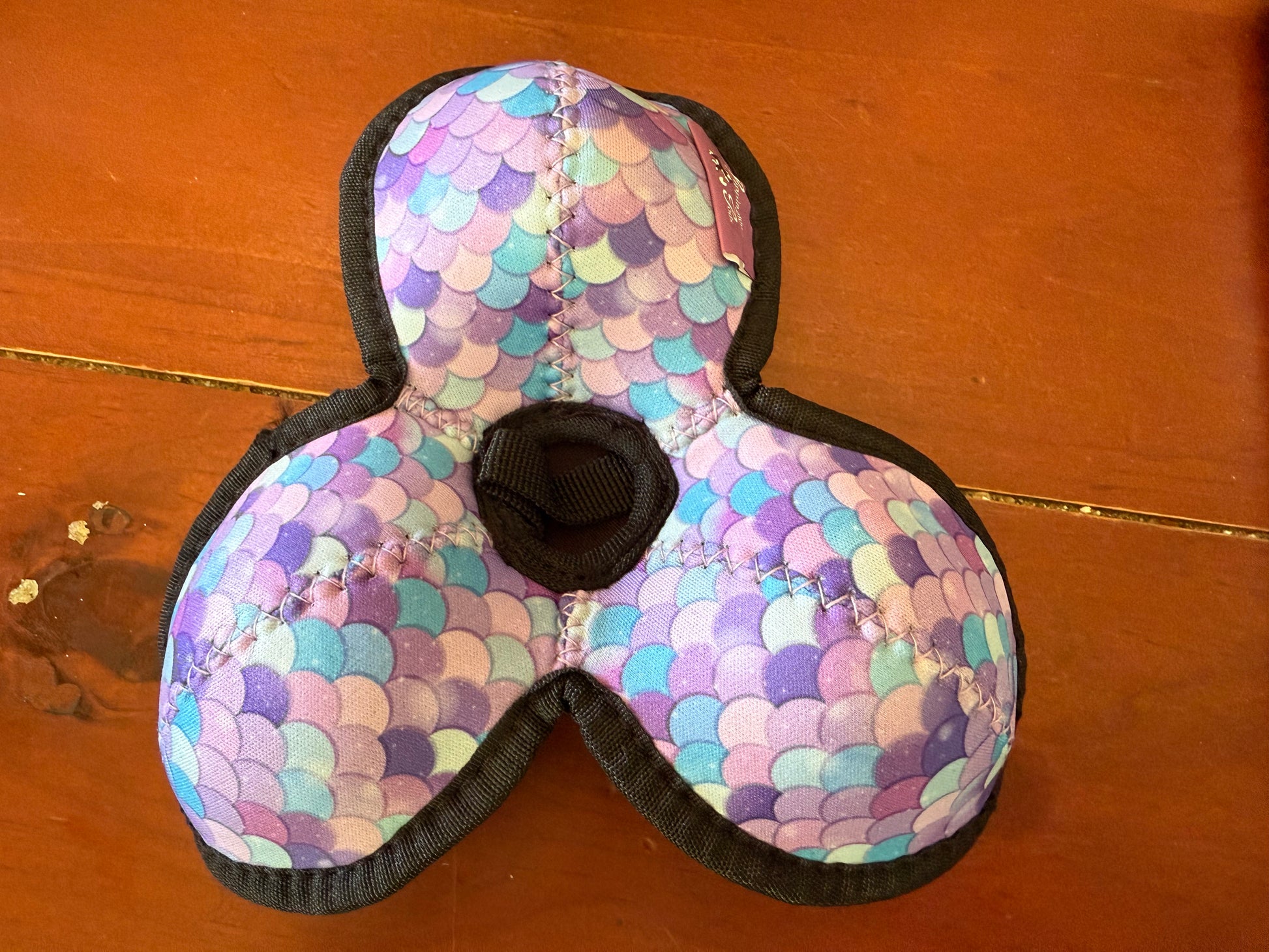 They’ve got a neoprene shell on the outside, a canvas interior, and soft, non-toxic stuffing. Safe for dogs, strong enough for repeat play.