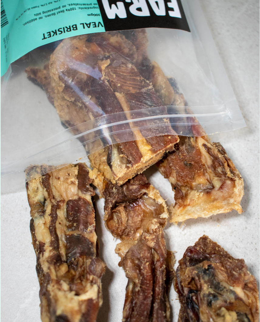 Dogs love air dried Veal Brisket, a tasty meaty treat for your four-legged friend.