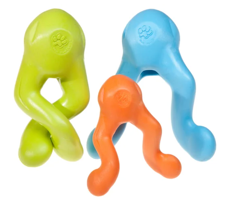 This cleverly designed treat toy for dogs has multiple functions. Toss in the air for a fun game of fetch on water and land! Or stuff its compartment full of your dog's favorite treats and twist the handles to make pup work harder to get the treats out.
